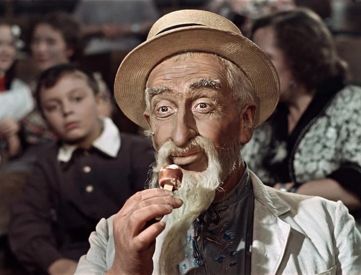 Над гримом для фильма «Старик Хоттабыч» работал художник Василий Горюнов. Именно он придумал образ могущественного джинна, при этом на его создание ежедневно приходилось тратить 2 часа. И дело было даже не в окладистой бороде, просто актеру Николаю Волкову нужно было каждый раз вылепливать из специального пластилина нос и губы.
