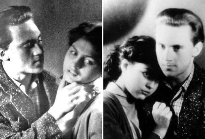 Аза в кино (слева) и с Высоцким (справа).