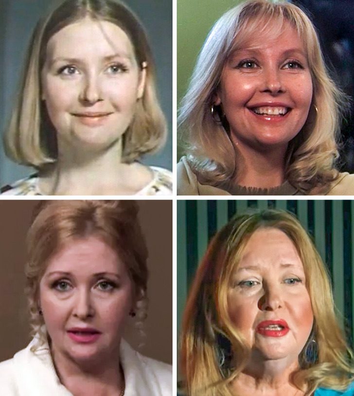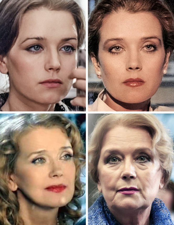 Никогда не могла понять на основании чего Кустинскую и Светличную зачислили в красавицы. Они и по молодости были так себе, а уж к солидному возрасту стали вообще откровенно страшными.