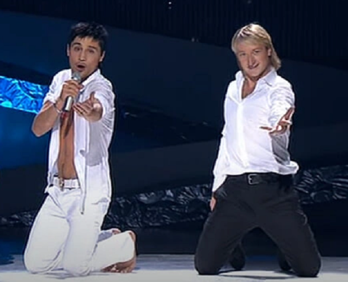 Дима Билан и Евгений Плющенко на сцене «Евровидения»