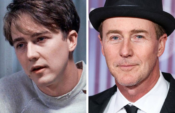 Эдвард Нортон в фильме «Первобытный страх» в 1996 году и в 2024