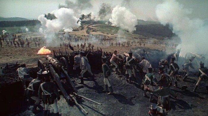 После выхода фильма на экраны зрителей и критиков больше всего удивляли батальные сцены. Они захватывали дух и не оставляли ни единого шанса сомневаться в гениальности режиссёра, сумевшего подчинить себе такое количество людей и механизмов. Специально для работы в фильме был создан Кавалерийский полк, а в экранном Бородинском сражении было задействовано больше 15 тысяч человек, в том числе пехотинцы, кавалеристы, пиротехники и многие другие специалисты. Количество шашек, снарядов, дымовых гранат и литров керосина исчислялось тысячами.