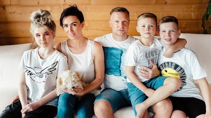 Марина Трескунова с детьми и Семеном Трескуновым