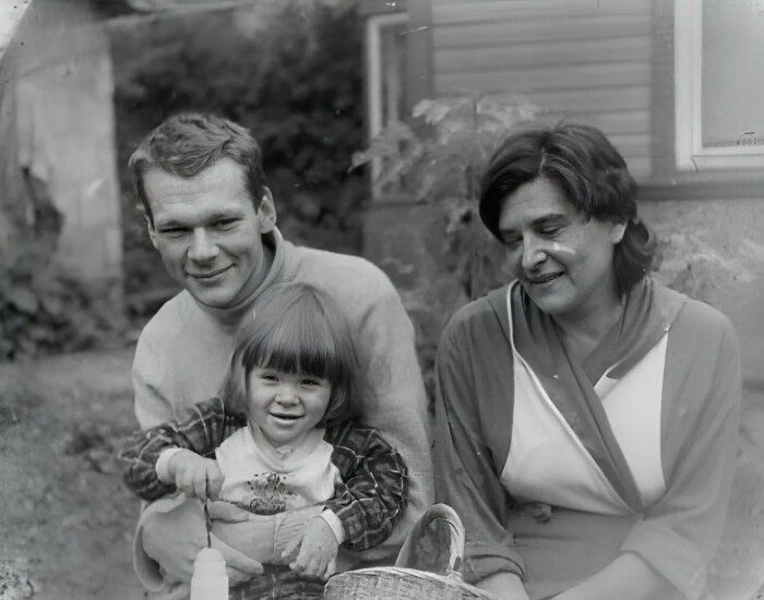 Никита Михайловский с дочкой и тещей.