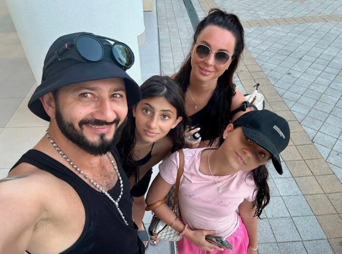 Михаил Галустян с женой и дочками.