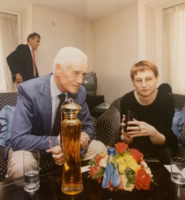 Эвелина Хромченко берет интервью у парижского кутюрье Филиппа Вене в 1996 году.