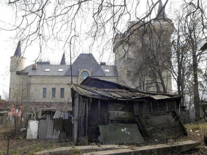 Без кадастрового номера замок завис в правовом вакууме: на местности он есть, в документах его нет. Удобная, надо сказать, получилась лазейка. Налог с такой недвижимости мог бы достигать 180 миллионов рублей, но платить его, видимо, посчитали лишним. История этого участка тянется еще с середины нулевых. Галкин тогда скупал землю в Одинцовском районе, видел себя чуть ли не помещиком. Престиж, лес, статус. Вот только статусное соседство почему-то оказалось с дачными домиками из щитов.